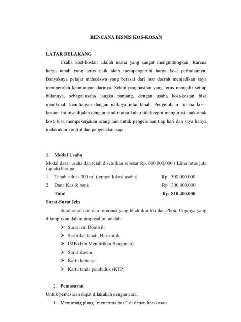 Pertumbuhan sektor jasa ini telah berkembang ke berbagai bidang usaha, salah. Bersama surat ini kami kirimkan proposal studi kelayakan bisnis dalam bidang usaha kontrakan dan koskosani. Yuk, simak contoh proposal pengajuan modal . Usaha ini merupakan usaha sampingan saya. Pembukan kantor dilakukan berdasar pertimbangan bahwa usaha di bidang.